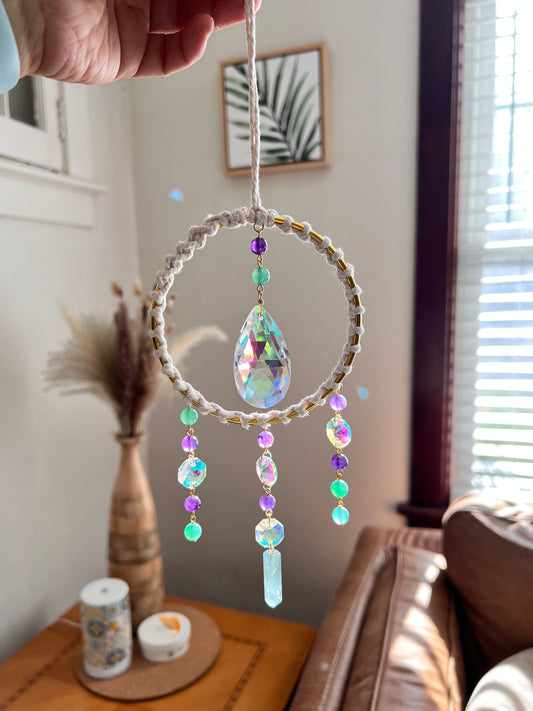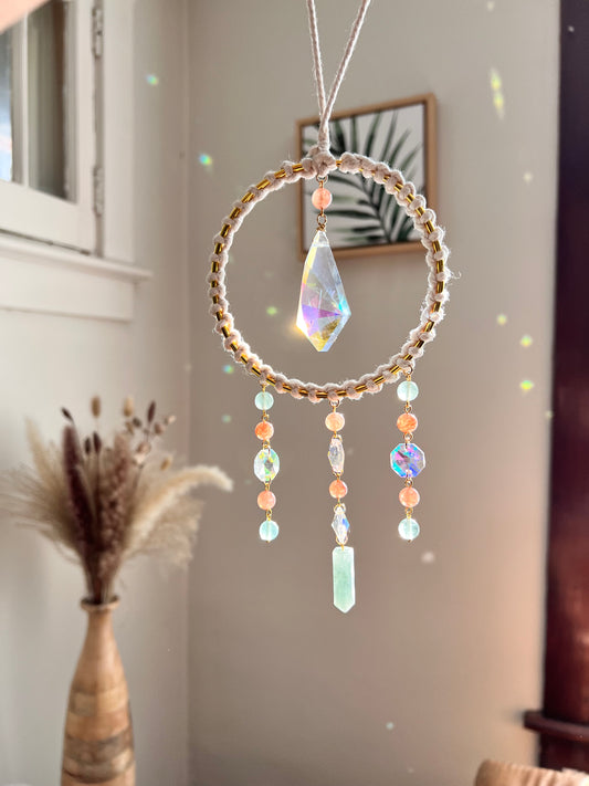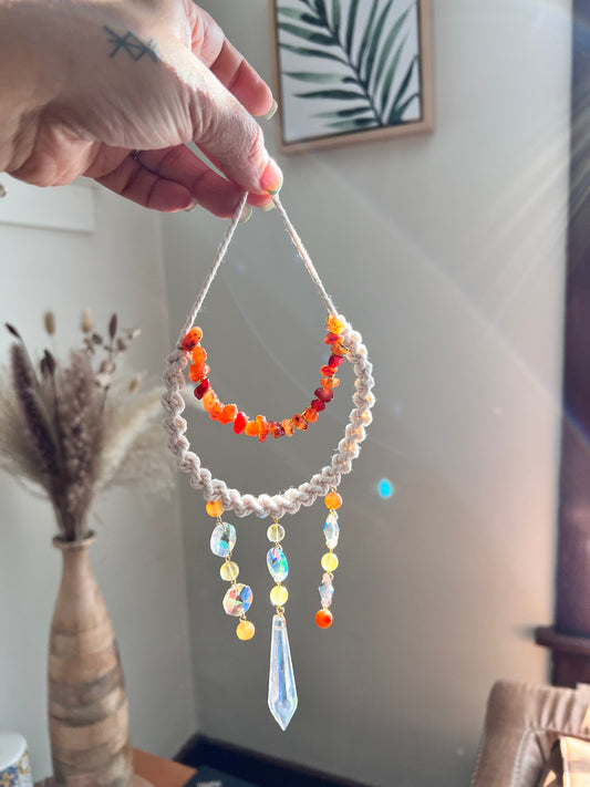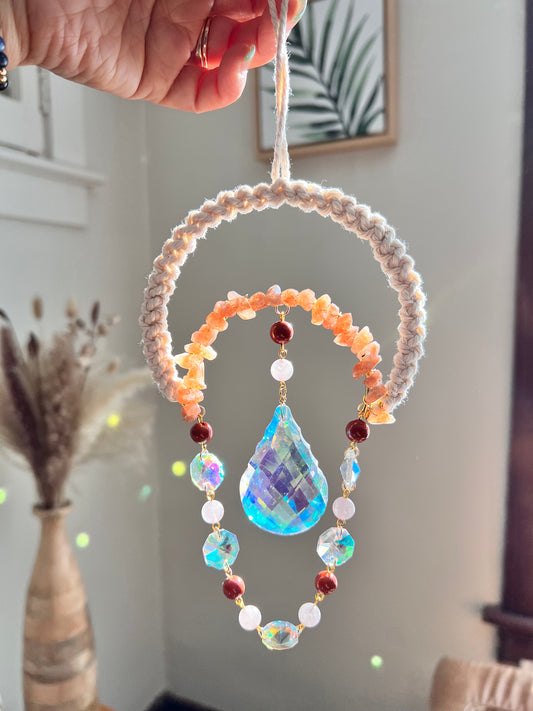 Carnelian, Garnet and Rose Quartz Crystal Suncatcher