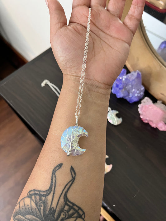 Angel Aura Quartz Crescent Moon Tree of Life Necklace