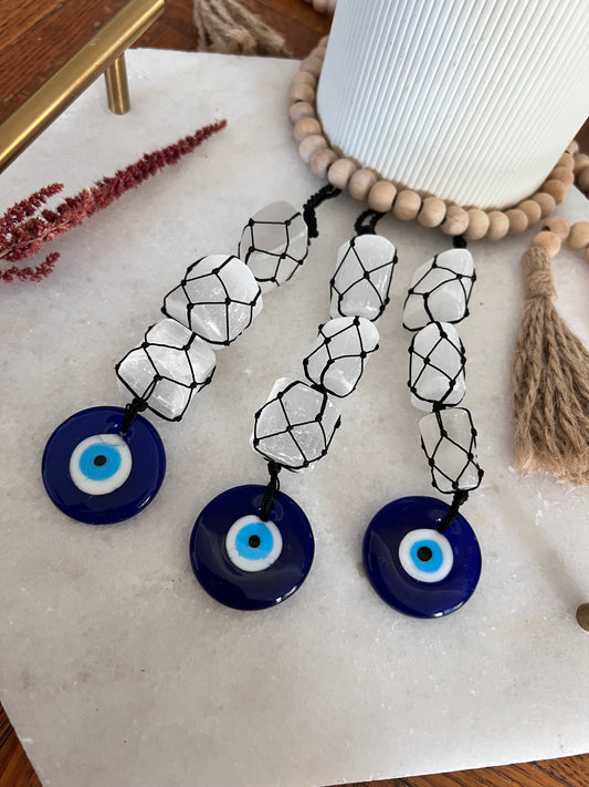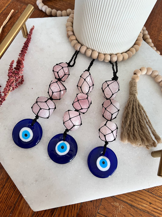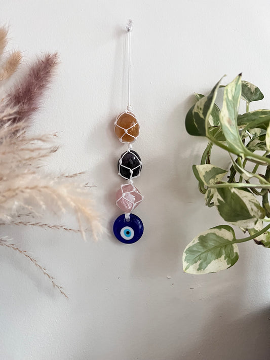 Evil Eye Macrame - Citrine, Amethyst and Rose quartz crystals