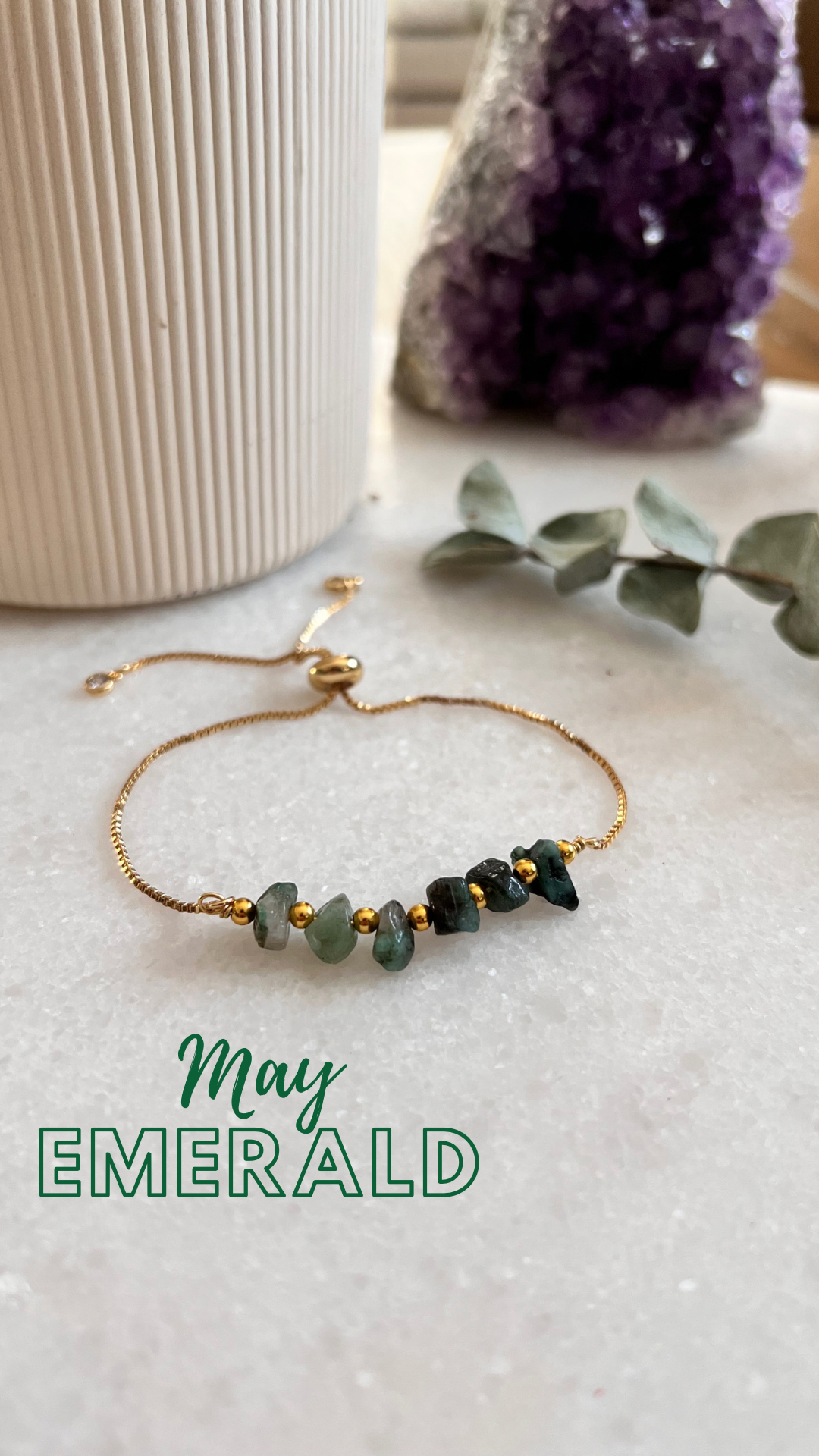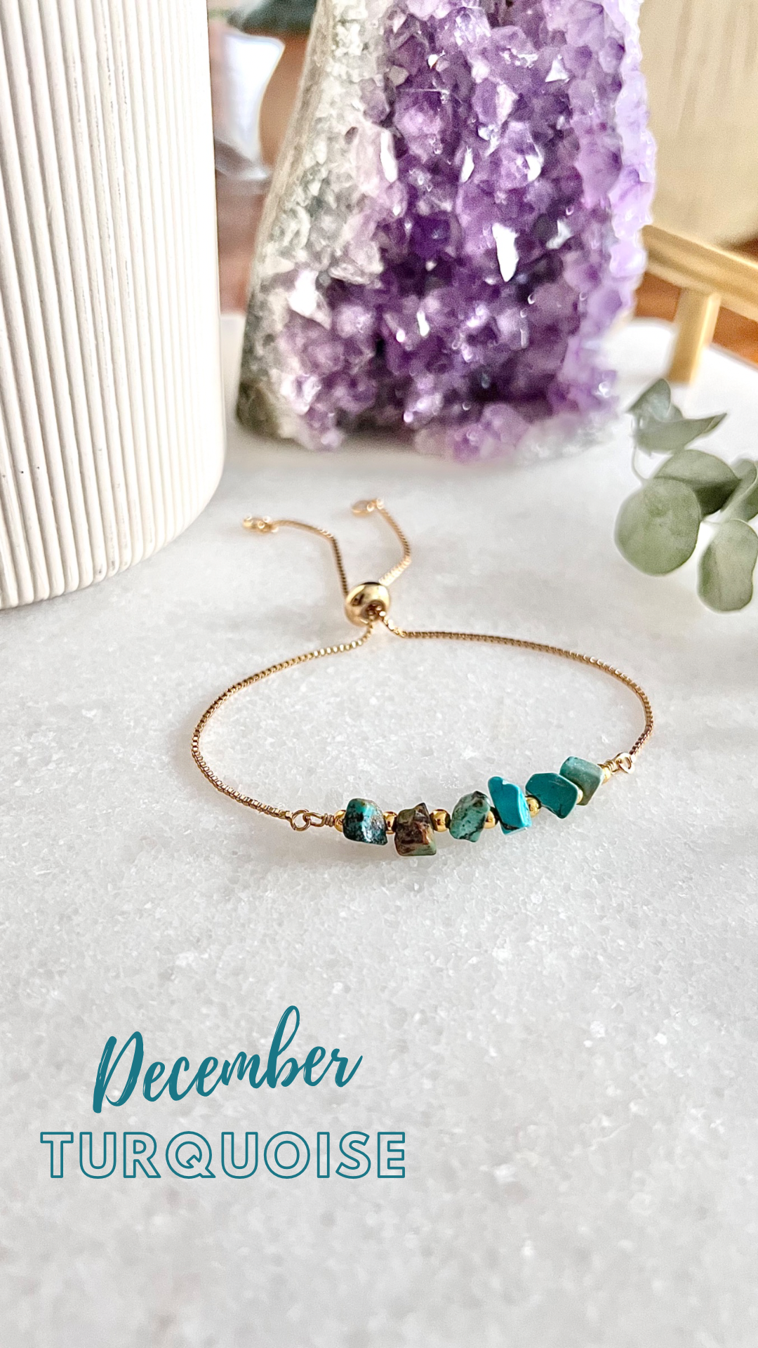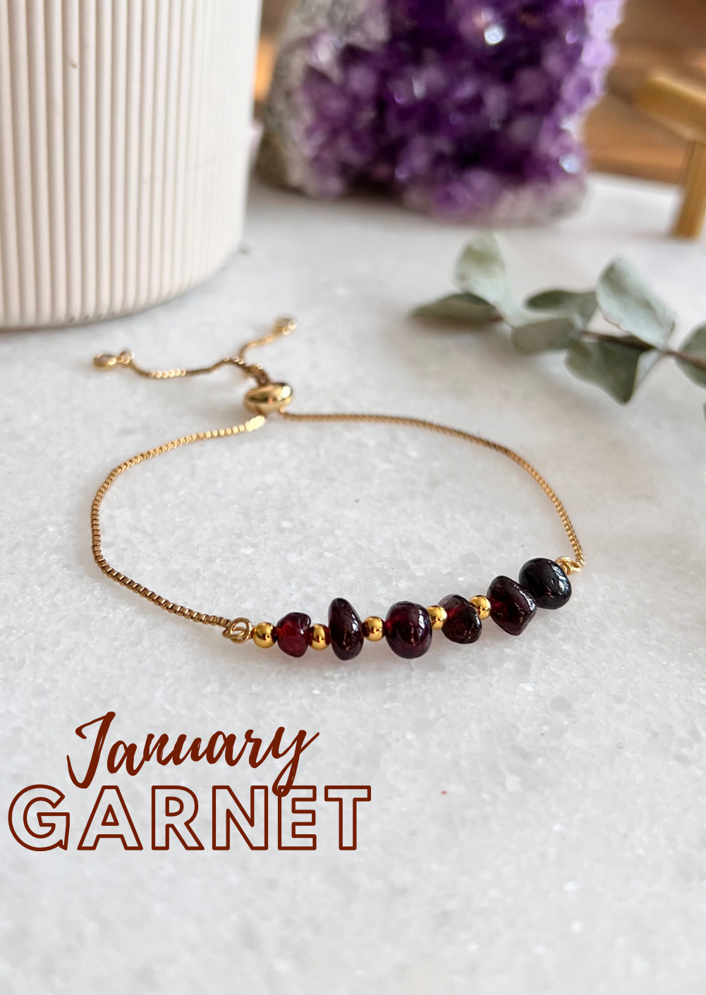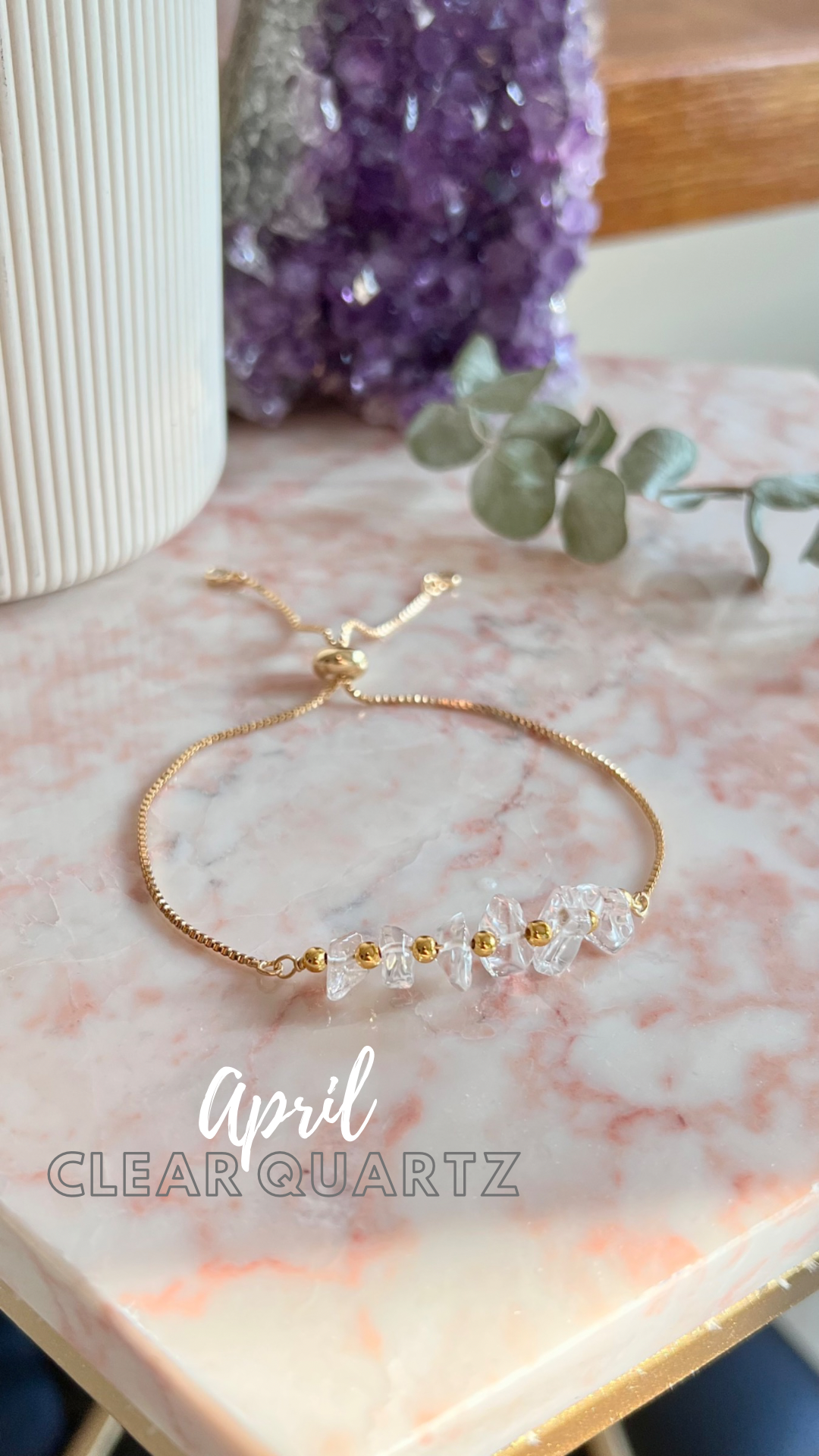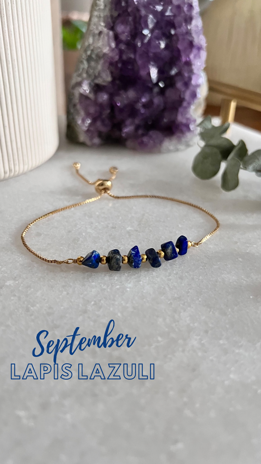 Birthstone Bracelets handmade with natural crystals and pure brass adjustable sliding chain.